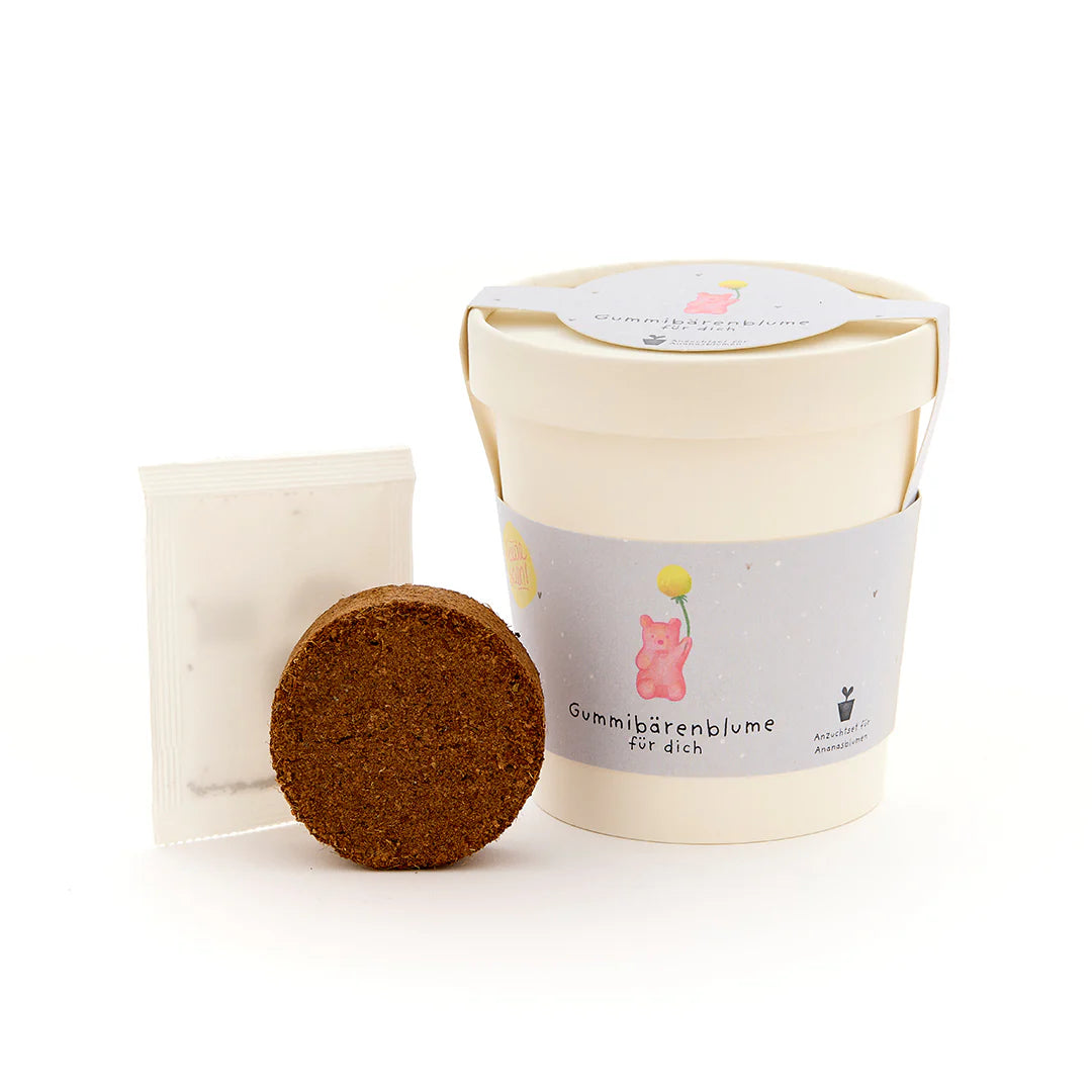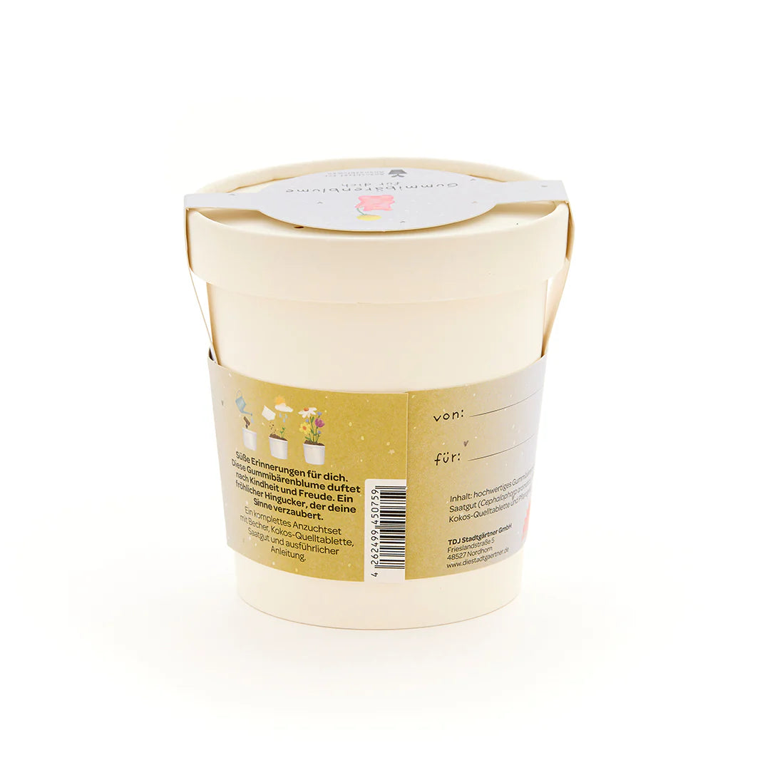 🌼 Ein süßer Blumengruß mit Spaßfaktor: Dieses charmante Anzuchtset zaubert nicht nur ein Lächeln, sondern auch nach Gummibärchen duftende Blüten auf die Fensterbank. Der liebevoll gestaltete Becher mit dem Spruch „Gummibärenblume für dich“ ist ein humorvolles Geschenk, das Kindheitserinnerungen weckt und Freude wachsen lässt.