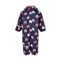 Regenanzug gefüttert mit Fleece | Dunkelblau mit rosa Elefanten | CeLaVi - 80
